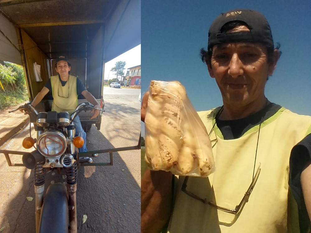 Consultado si elabora o adquiere el producto para comercializar directamente, Núñez señaló que “es una chipa torneada de Quesito, que son los parientes de los propietarios de la chipería Santa Ana y utilizan la misma receta, de muy buena y comprobada calidad”, ante la mirada de varias personas que se detienen a observar el motovehículo estacionado.