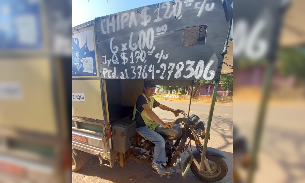 Lleva casi dos décadas transitando las calles y avenidas del oeste posadeño vendiendo chipa, en una actividad en la que debió “aggiornarse” para no perder clientela ante la difícil realidad económica. Héctor Núñez (53 años), sumó el WhatsApp para levantar pedidos y realizar entregas en su moto, donde además dispone de espacio para quienes quieran publicitar y así sumar ingresos extras. Criticó a sus colegas que “cobran caro” la chipa porque de esa manera “hacen que la gente desconfíe de mi producto por el solo hecho de que es más barato”.