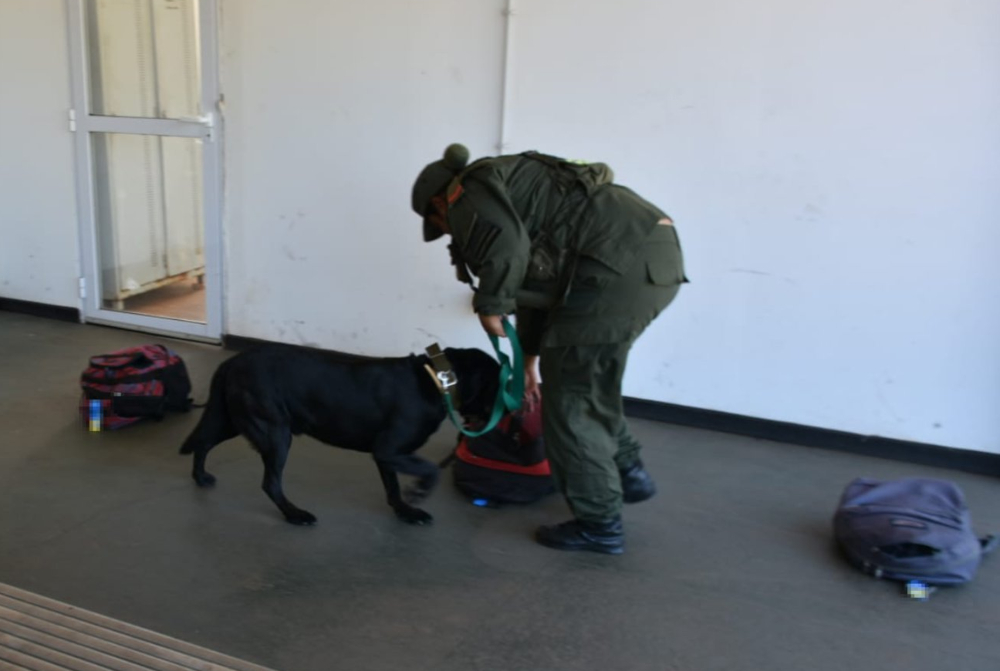 El olfato del can antinarcótico "Tom", de Gendarmería Nacional, fue clave para la detección de la droga escondida en dos mochilas.
