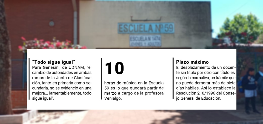 Por ello, la profesora de música Laura Venialgo recién podrá tomar estas horas en marzo de 2023 y, mientras tanto, seguirá cobrando por las mismas el docente sin título específico.
