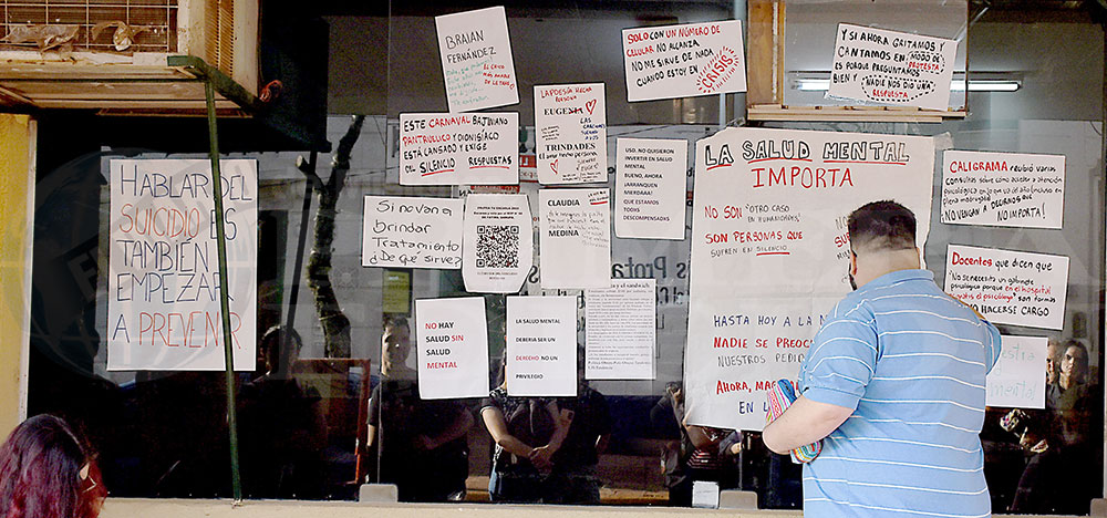 Por ese motivo decidieron movilizarse este viernes con una sentada frente al edificio de la Facultad de Humanidades para exigir que el establecimiento educativo tome partida de los acontecimientos y medidas al respecto de la salud mental.