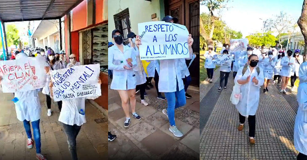 “Hay materias como Histología o Medicina Interna donde la tasa de aprobación apenas supera el 5%. No estamos pidiendo que bajen el nivel de exigencia sino poder contar con reglas claras, no puede ser que un docente desapruebe porque no está de acuerdo con el contenido del libro que usamos todos los estudiantes de medicina. Tampoco es aceptable que, en medio de un examen, un docente comience a los gritos a decirte que no te da la inteligencia para estudiar la carrera. O que te diga que está bien lo que decís, pero te desaprueba porque no le gusta. Por eso, pedimos a las autoridades de la Fundación Barceló que sean docentes de otras sedes las que tomen los exámenes, aunque sean en modo virtual”, indicaron.