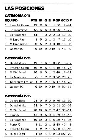 En otro de los juegos disputados ayer por la mañana, siempre en C-15, Ruka Futsal dio la nota y obtuvo su primer triunfo en el campeonato, al derrotar a Porto FC por un contundente 7-3.