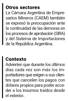 La Cámara apuntó además a nuevas restricciones, como la Resolución General 5260 de la AFIP que redujo de USD 3.000 a USD 1.000 el monto máximo para ingresar mercadería al país mediante el sistema “Puerta a Puerta”. Esto, dicen, impide resolver a la necesidad de un insumo, repuesto o herramienta esencial con urgencia.