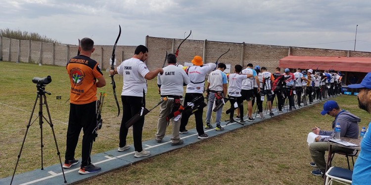 La competencia arrancó temprano, con la revisión de equipos y para las 9 se lanzaron las rondas de clasificación. En la modalidad aire libre se realizan dos rondas de 36 flechas cada una, lo que hace un total de 72. Luego siguió la instancia de eliminatorias y cuartos de final. Sin embargo, el mal tiempo y la lluvia se hicieron presentes y obligaron a un descanso. El reglamento indica que se puede continuar tirando mientras no haya descargas eléctricas, pero los jueces decidieron esperar a que pase la lluvia.