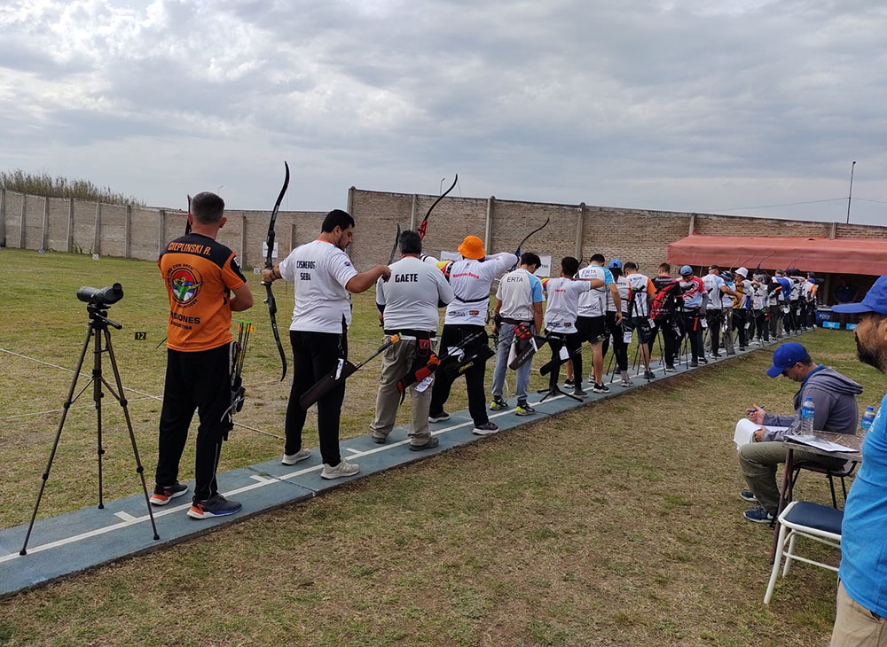 La competencia arrancó temprano, con la revisión de equipos y para las 9 se lanzaron las rondas de clasificación. En la modalidad aire libre se realizan dos rondas de 36 flechas cada una, lo que hace un total de 72. Luego siguió la instancia de eliminatorias y cuartos de final. Sin embargo, el mal tiempo y la lluvia se hicieron presentes y obligaron a un descanso. El reglamento indica que se puede continuar tirando mientras no haya descargas eléctricas, pero los jueces decidieron esperar a que pase la lluvia.