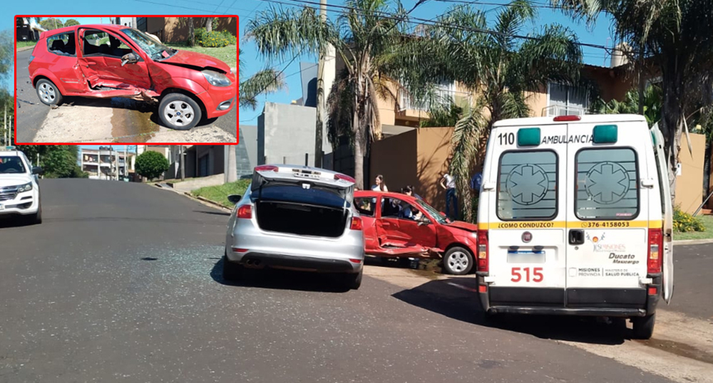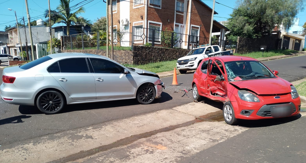 Dos automóviles chocaron violentamente en una esquina de Posadas, con daños materiales pero afortunadamente sin lesionados.