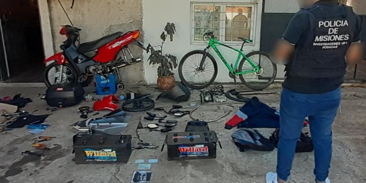 Efectivos de la División Investigaciones de la Unidad Regional I irrumpieron este martes por la mañana en dos viviendas del barrio Jardín de Posadas, donde detuvieron a un hombre de 37 años y secuestraron dos motos, ocho documentos alterados, herramientas para el desguace y motopartes, entre otros objetos de interés en la causa.