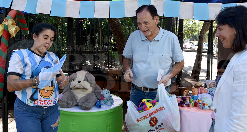 La Clínica del Juguete sigue trabajando en recolectar juguetes para poder llegar a la mayor cantidad de niños de la ciudad en esta Navidad con un presente de Papá Noel. Por eso, este miércoles -y también lo harán este jueves- se instalaron con una carpa en la plaza 9 de Julio de Posadas recibiendo donaciones. A cambio entregan una bandera argentina “como una forma de apoyar a la Selección” que disputará el Mundial de Fútbol en Qatar.