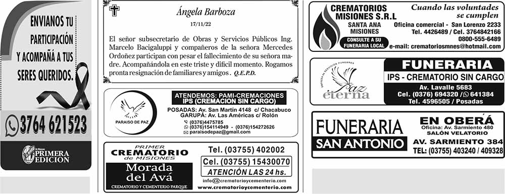 Fúnebres del Viernes 18 de Noviembre de 2022