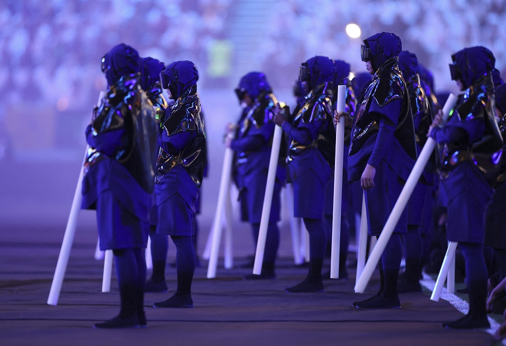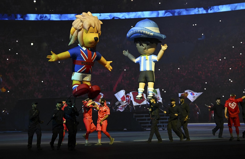 También hizo su aparición la nueva mascota del Mundial de Qatar 2022, la’ebb, y se escucharon canciones de las distintas ediciones mundialistas, al tiempo que camisetas y banderas de las 32 selecciones desfilaron por el centro del campo de juego y se oyó el característico cántico de “vamos, vamos Argentina”.