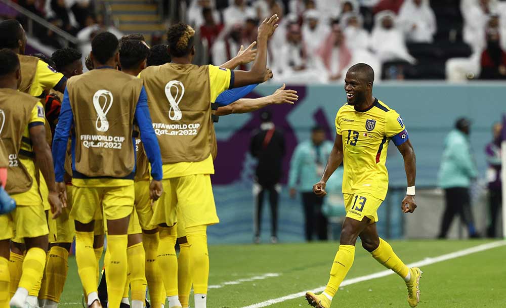 Pese al desencanto, el equipo sudamericano tomó el rol de protagonista del partido jugando en campo rival y buscando trasladar su dominio del juego, en la ventaja del marcador; Y de insistir, el equipo de Gustavo Alfaro tuvo su premio a los 15 minutos. Enner Valencia fue derribado en el área por el aruqero Meshaal Barsham en un claro penal y allí fue el propio Valencia que con sutileza abrió el marcador anotando primer gol del mundial.