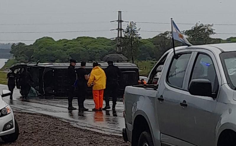 Sucedió a la altura de la rotonda de acceso al barrio Las Calandrias, cuando el joven chofer de 24 años viajaba desde San José hacia Posadas. Cuando llegó a este sector de la arteria, aparentemente pisó un espejo de agua y volcó, quedando el vehículo de lado sobre la ruta.