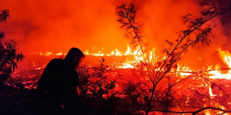 El domingo, otro incendio forestal se sumó a los siniestros registrados en el mes de noviembre. En Mártires, efectivos de la División Bomberos de la Unidad Regional II, junto a los Bomberos Voluntarios de Oberá, agentes de la Comisaría local y municipales trabajaron en conjunto para sofocar un incendio de gran magnitud que se expandía a través de un pinar.