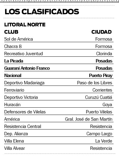 Equipos avanzaron a la siguiente instancia. De la región Litoral Norte son 16, de los cuales hay tres misioneros: La Picada, Guaraní y Nacional de Piray.