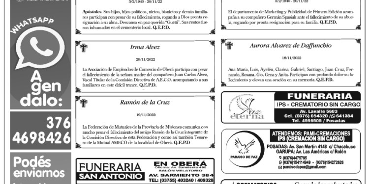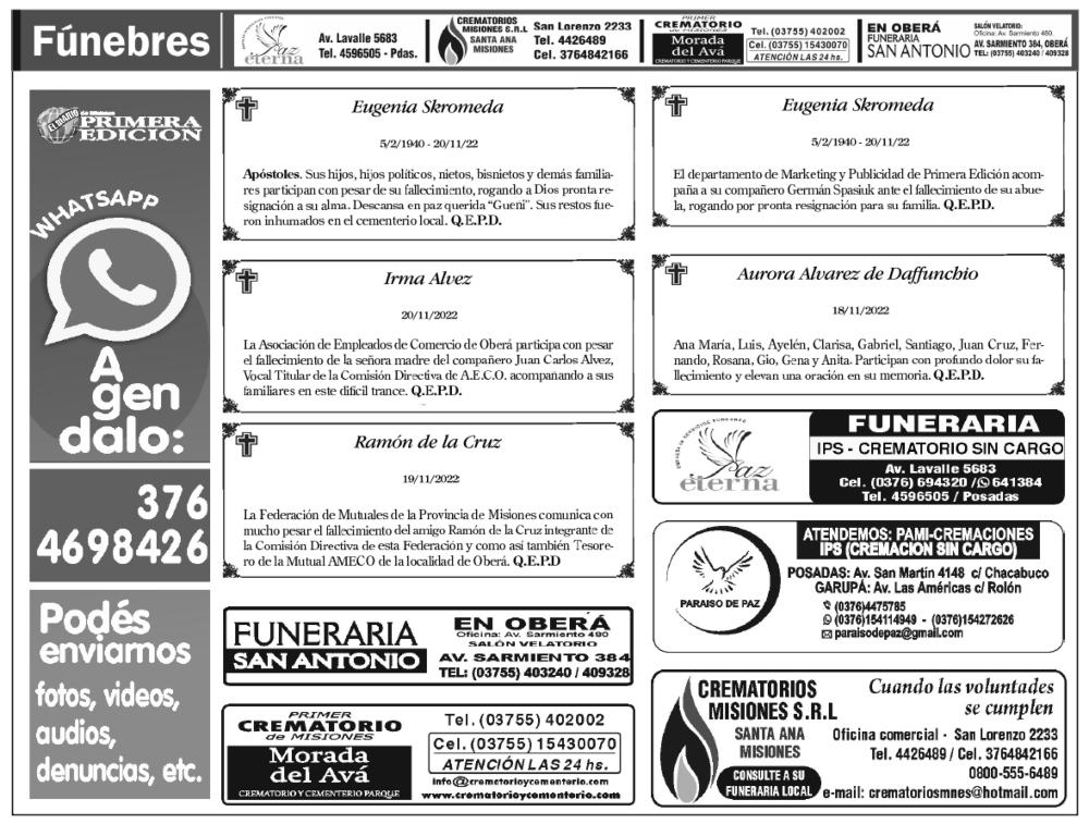 Fúnebres 21-11-2022