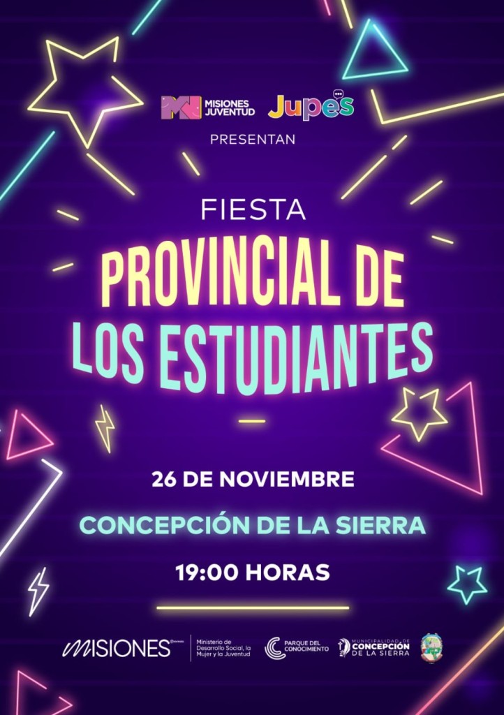 Este fin de semana, el sábado 26 y el domingo 27, Concepción de la Sierra recibirá a jóvenes de más de 20 municipios misioneros para celebrar la Fiesta Provincial de los Estudiantes, donde se llevará adelante la elección de reinas y reyes estudiantiles, pero también habrá música, un paseo turístico, actividades deportivas y una gran Fan Fest para alentar a la Selección Argentina frente a México en el Mundial de fútbol de Qatar.