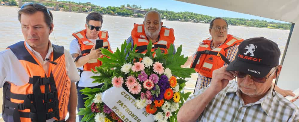 Se cumplió este viernes el Día de la Marina Mercante y, como parte de las actividades en Posadas, trabajadores de la actividad, directivos y familiares, navegaron en aguas del río Paraná a bordo de un catamarán y realizaron un recordatorio con una ofrenda floral en honor a los navegantes ya fallecidos a la altura del puente San Roque González de Santa Cruz.