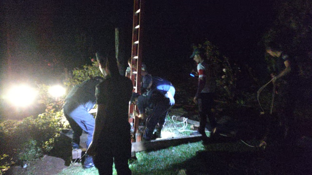 El hecho ocurrió en el paraje San José, en el municipio de Alba Posse, alrededor de las 20:20, cuando el segundo de los mencionados estaba bombeando agua desde el pozo de unos 12 metros de profundidad.