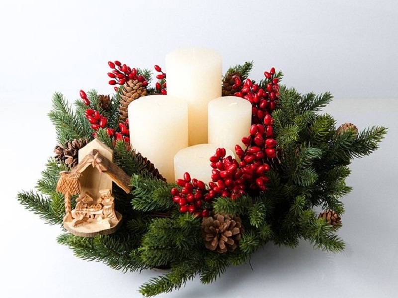 Esta corona tiene cuatro velas que se encienden progresivamente, cada uno de los domingos hasta la Navidad.