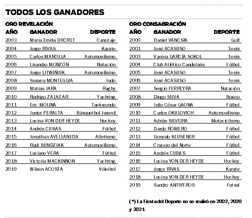El Salón Eva Perón del lugar albergará una vez más la emoción y la expectativa de más de un centenar de deportistas que conformarán las 37 ternas en busca de la estatuilla ganadora. Además, claro, se entregarán cerca de 50 menciones especiales. Y sobre el final de la noche, el Oro Consagración y el Oro Revelación, los máximos galardones de la noche.