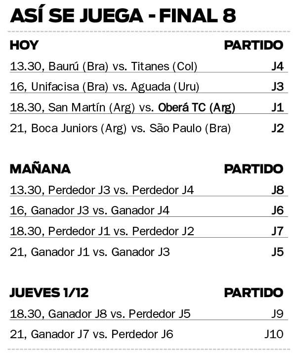 La fase se juega a doble eliminación, por lo que OTC deberá vencer hoy al Santo y luego imponerse sobre el vencedor del choque entre Unifacisa de Brasil y Aguada de Uruguay para abrochar el pasaje al Final Four.