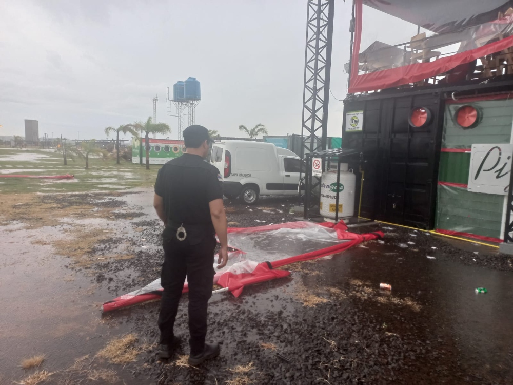 Integrantes de la Dirección de Seguridad realizaron un relevamiento en los distintos sectores de la Costanera Sur constatando voladura de techos y cartelería de distintos locales, vuelco de los contenederos de residuos y caída de los adornos navideños colocados por la Municipalidad.