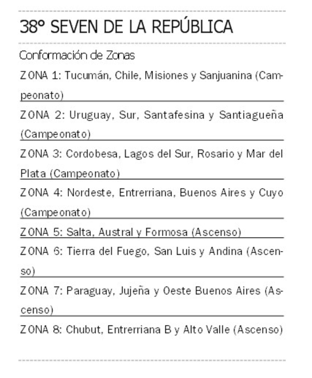Se pondrá en marcha hoy en Paraná, Entre Ríos, la 38° edición del Seven de la República, la tradicional competencia de rugby reducido organizada por la Unión Argentina de Rugby (UAR), que se jugará en cancha de los clubes Atlético Estudiantes, en su sede El Plumazo, y Paraná Rowing en el complejo La Tortuguita.