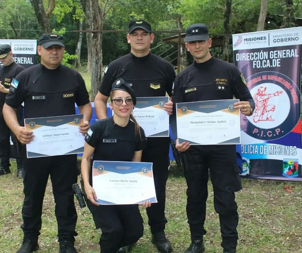 El jefe de Policía, Carlos Miguel Merlo, en conjunto con los capacitadores y jefes del Departamento de Tiro, ayer en la mañana en el campo laboral ubicado en Profundidad, realizaron el acto de cierre, donde entregaron los certificados a los que culminaron con éxito el curso.