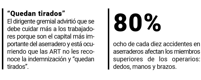 El secretario general del Sindicato de la Madera de Posadas, Agustín Báez, lamentó que en el sector “entendemos que no se está trabajando en un área tan importante como es la seguridad e higiene, porque nos están llegando muchos accidentados”.
