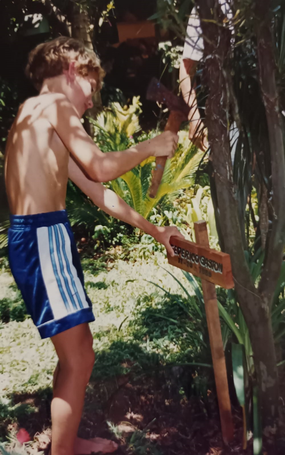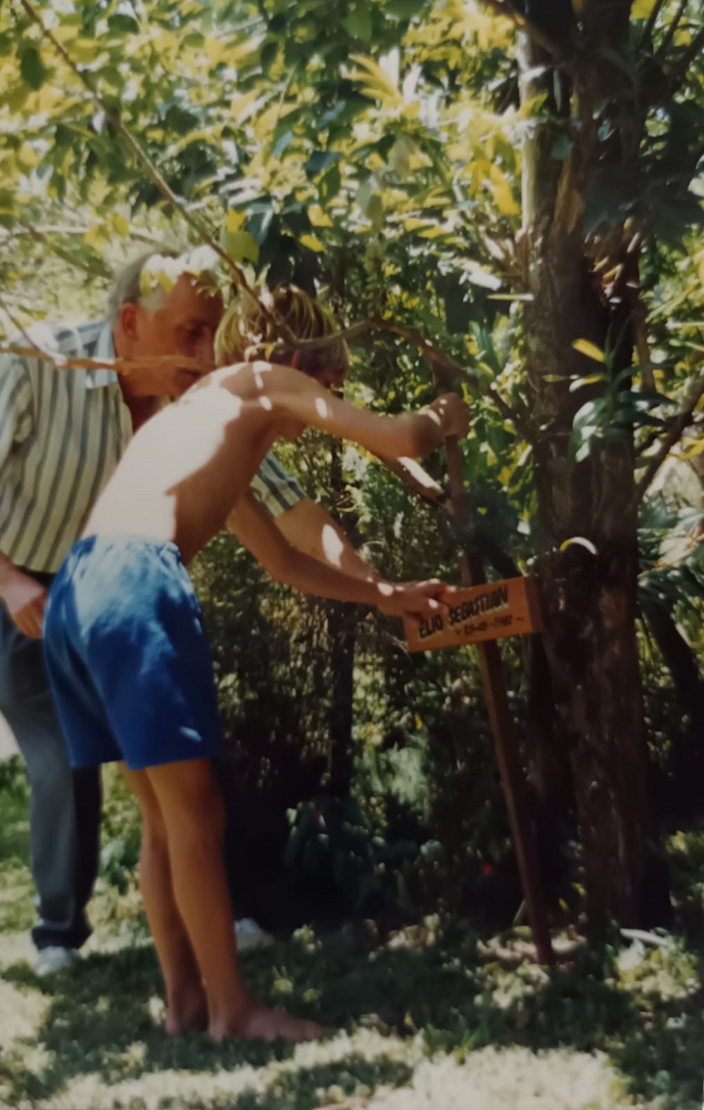 Los primeros beneficiados fueron sus cuatro hijos: Manfredo Roberto, araucaria excelsa; Marina Graciela, araucaria excelsa; Claudio Rolando, lapacho amarillo tipo avá, y Mario Ricardo, roble europeo. Y a su esposa le regaló un acer.