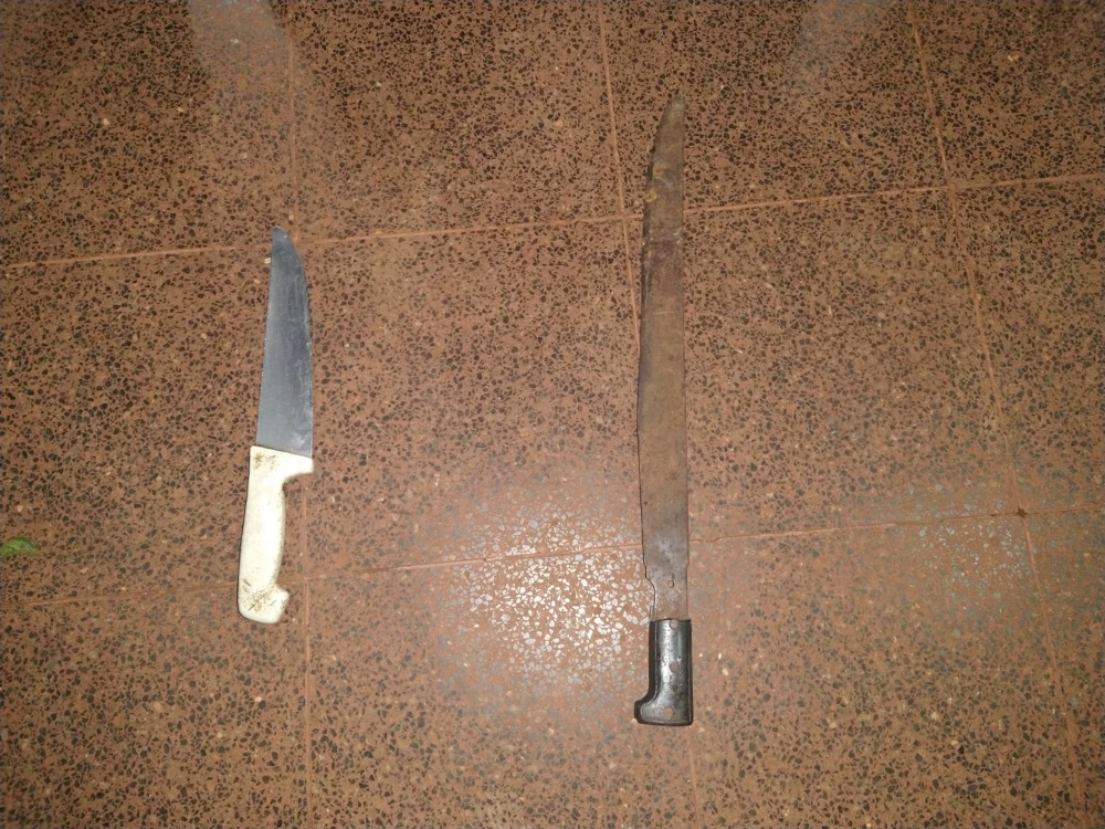 Luego de reducir a los agresores, se les incautó un machete y un cuchillo.