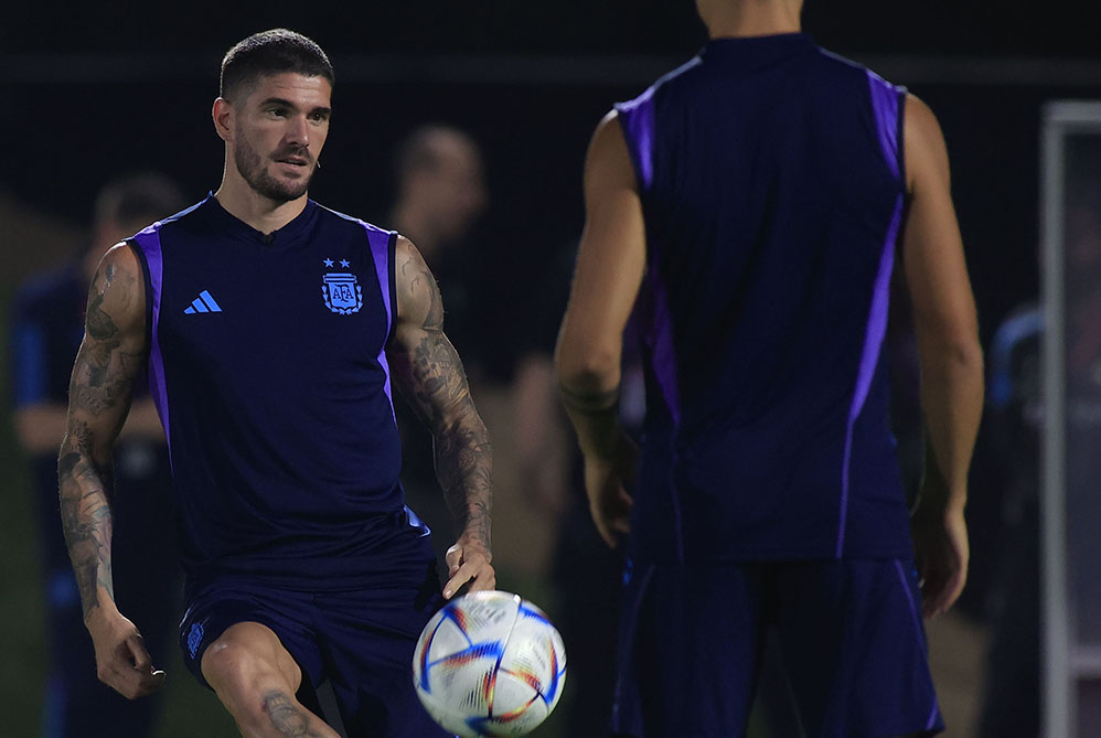 La Selección realizó hoy su penúltima práctica de cara al partido del viernes ante Países Bajos por los cuartos de final del Mundial de Qatar 2022 sin Rodrigo De Paul pero con Ángel Di María ya recuperado.