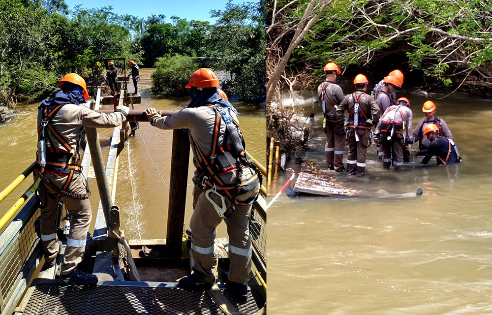 Sobre el progreso de las tareas, García explicó que se torna difícil por la altura del río. “Para que se pueda trabajar con normalidad y tranquilidad tiene que estar en un caudal entre los 1.800 y 2.400 metros cúbicos. No muy alto, ni muy bajo. Esta semana la altura imposibilitó poder trasladar el material que teníamos en continente hacia los puntos que tenemos que recuperar la pasarela”.