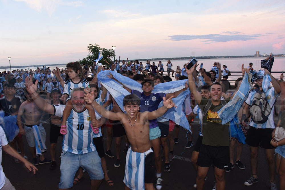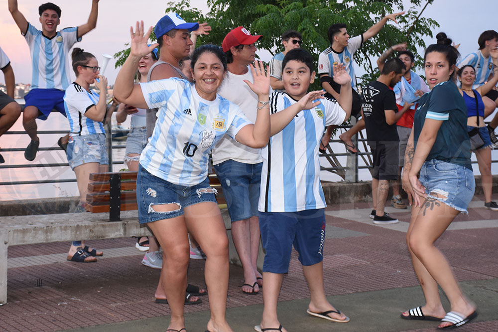 Como ya es habitual, el epicentro de los festejos estuvo la costanera, donde cientos de fanáticos de todas las edades compartieron la emoción y euforia por Messi y compañía, y se unieron en los cánticos que alimentan la ilusión de alcanzar una nueva final del mundo.
