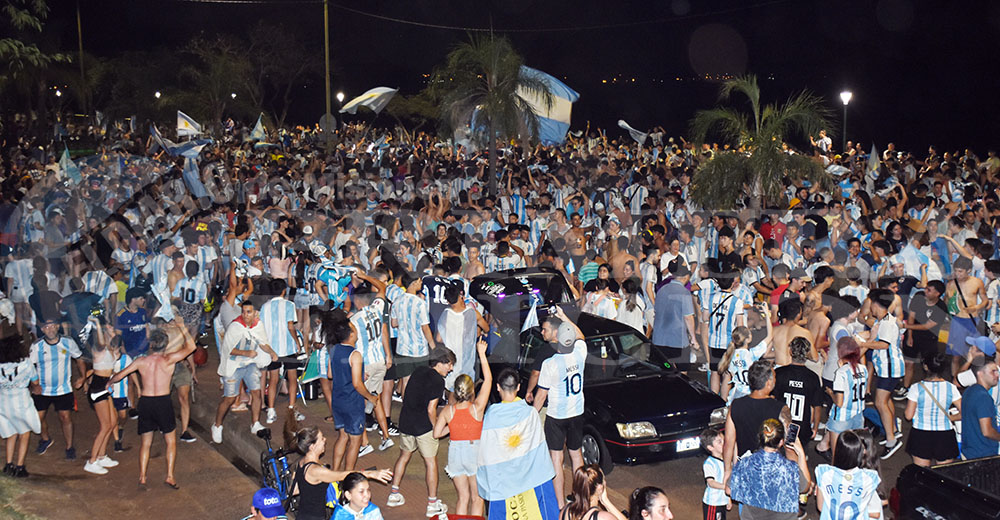 De la misma manera, la alegría se replicó en todas las localidades del interior, donde los hinchas salieron a copar las calles de celeste y blanco, o por ejemplo en el caso de Andresito, donde se escuchó el himno nacional por toda la ciudad.