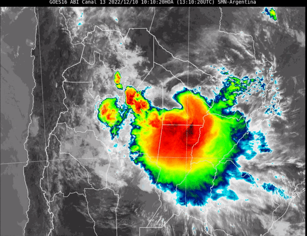 El organismo meteorológico indicó que el área será afectada por tormentas aisladas, “algunas de las cuales podrán ser localmente fuertes, siendo acompañadas de intensas ráfagas, ocasional caída de granizo, fuerte actividad eléctrica y abundante caída de agua en cortos períodos de tiempo”.