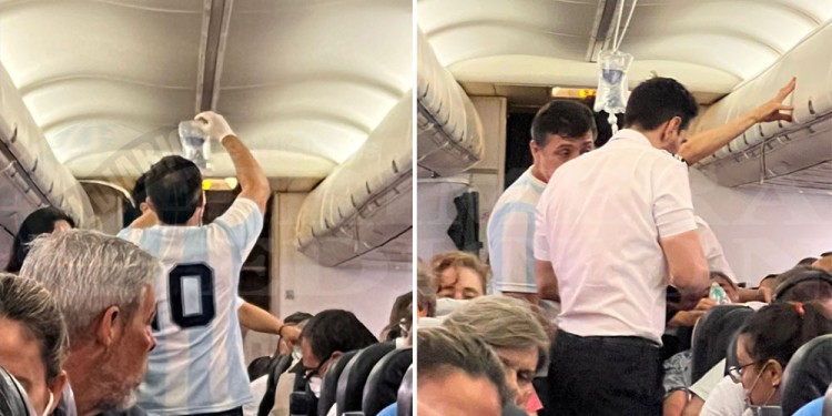 Con su remera de la selección y el poderoso número 10 en la espalda, el profesional (que pidió reserva de su identidad porque “cualquier colega haría lo mismo”) acudió al llamado por altavoz del comisario de a bordo preguntando si había un médico entre los pasajeros para ayudarlos a asistir a un hombre de 65 años que estaba descompensado.