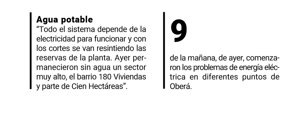 Con altas temperaturas que al mediodía superaron los 40 grados de sensación térmica, numerosos usuarios de la Cooperativa Eléctrica Limitada Oberá (CELO) vivieron en la víspera una nueva jornada complicada por los cortes de luz y agua que se registraron en diferentes puntos de la ciudad.