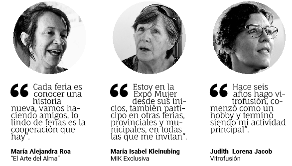Como cada año, desde 2008, en la Expo Mujer se encuentra todo tipo de productos, desde aromatizantes, vitrofusión, pañuelos, carteras, tejidos y plantas, entre otros, en su mayoría artesanales e ideales para tener en cuenta a la hora de hacer un regalo de Navidad.