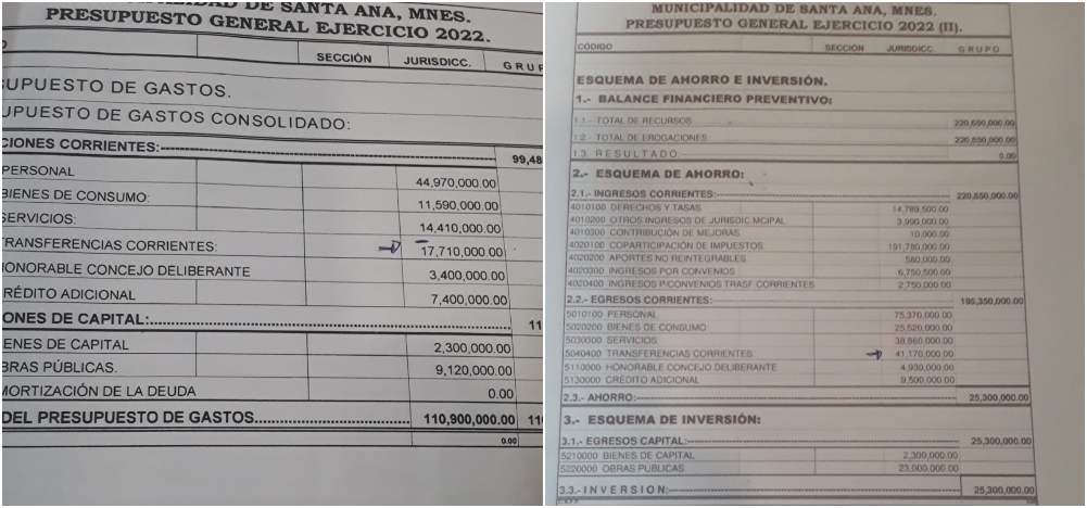 A decir de Silva, quien acompañó lo denunciado con fotos del presupuesto 2022 y del proyecto del nuevo con las modificaciones (ver imágenes), se enfatizó que “en el Presupuesto de Gastos, los mayores montos solicitados implican una diferencia sustancial con lo anteriormente aprobado, por lo que presumimos que en su gran mayoría estos montos ya se han gastado con anterioridad, violando así el principio presupuestario que establece que las partidas votadas son la autorización para gastar hasta el monto presupuestado y no se puede superarlo sin cometer malversación de fondos”, denunció.