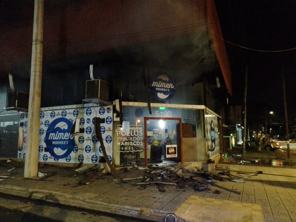 Según los primeros datos, las llamas alcanzaron ampliamente el sector de almacenamiento de Mimen, un mercado mayoristas y minorista de alimentos ubicado en avenida Rademacher y calle Alemania, pero no se expandieron por el local comercial.