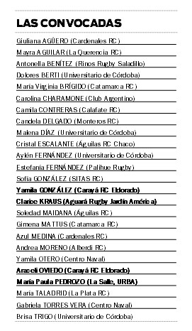 Luego de un par de años de ausentarse por diversos motivos y tras un excelente rendimiento mostrado en el último Seven de la República, la eldoradense María Paula “Pula” Pedrozo volvió a ser convocada para la Selección Argentina de Rugby Femenino y forma parte de la concentración mayor que arrancó ayer en la provincia de Buenos Aires.