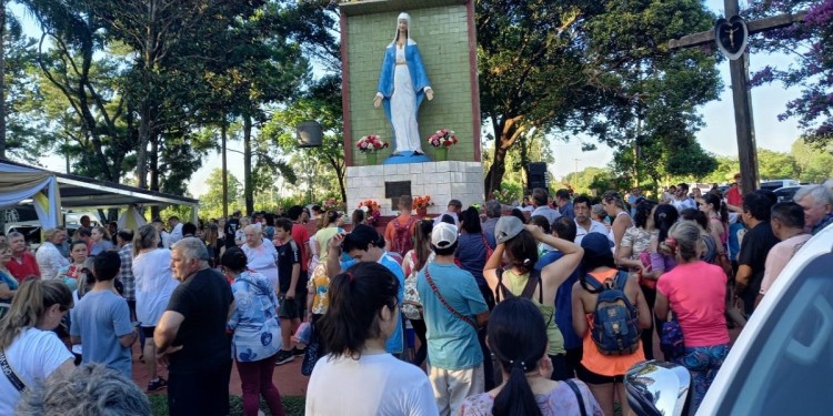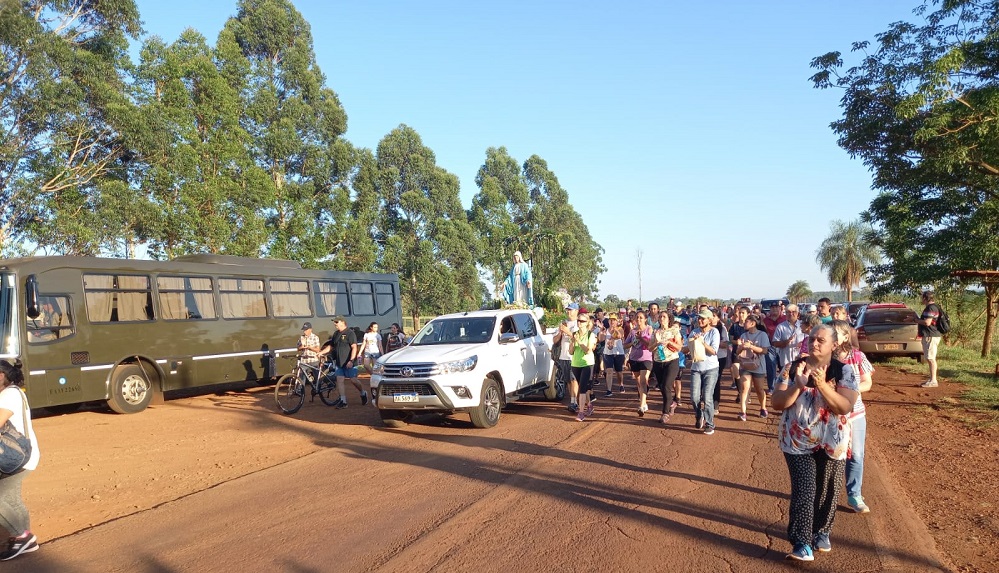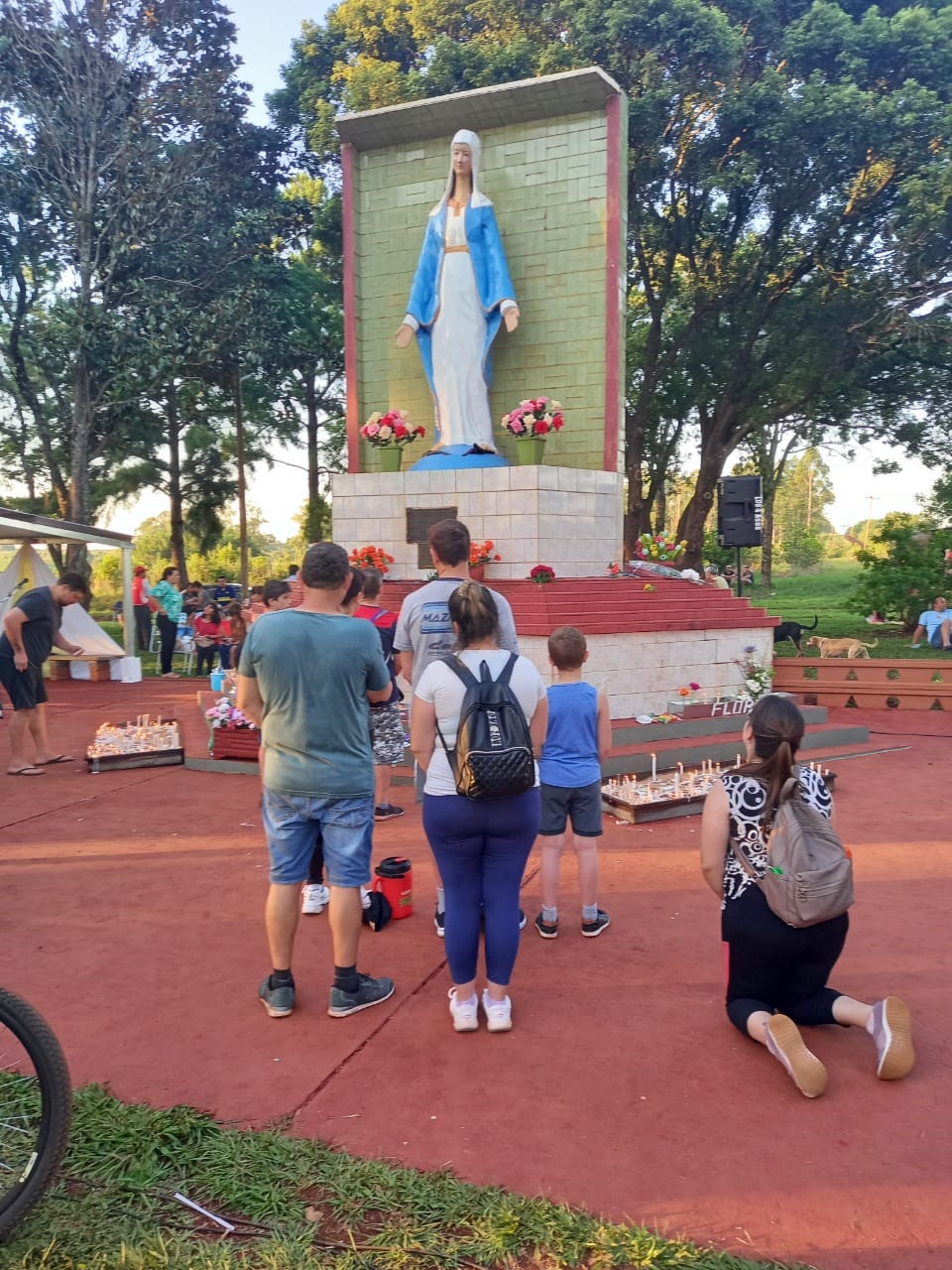 En el Año Mariano Universal, Elena Mazur tuvo la idea de levantar un monumento con la Virgen para que protegiera a los colonos. Juan Zadovey donó al Obispado de Posadas una franja de terreno que la ruta nueva había fraccionado de su chacra. Una vez conocido el propósito, los vecinos conversaron con el cura párroco de Apóstoles, Francisco Cichanowski, quien posibilitó una reunión un domingo a la tarde en la casa de Sadovey. La primera comisión fue integrada por Adán Raczkowski, Rosa Quirós de Wrobleski, Juan Zuk, Carlos Kosinki, Basilio Pezuk, Vladimiro Dobnia, María Feyuk de Korol, Antonio Zdanovich, Floriano Playuk, Dito Stelmaczuk, Pedro Dominik y Juan Sadovey, con el asesoramiento del padre Francisco. La comisión se abocó inmediatamente a la construcción del Monumento, el padre Danilo Novac (OSBM) construyó la estatua, Nelly Spinatto y Malena Caballero finalizaron la pintura, el pedestal lo realizó Ladislao Huber y la realización Floriano Grabovieski.