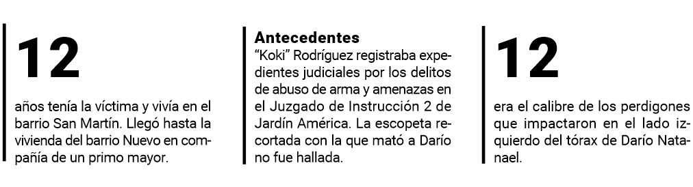 Un grito de auxilio y un niño con una herida en el tórax, fue lo que oyó y vio el dueño de una vivienda de calle Las Flores casi Bella Vista de Jardín América. En el suelo del patio trasero yacía el cuerpo sin vida de Darío Natanael Morgenstern (12) a causa de un disparo. El que blandió el arma huyó de la escena, estuvo prófugo y se presentó ante la Justicia. Ahora el juez de la causa confirmó que la investigación lo señala como el autor del hecho.