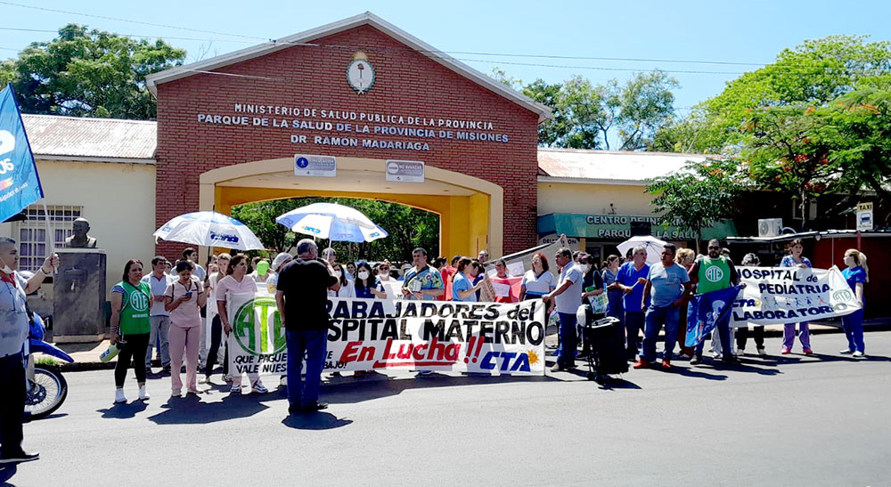 El paro de los trabajadores de salud afiliados a la Asociación de Trabajadores del Estado (ATE) se sintió ayer y se siente hoy en los distintos hospitales de la provincia. En Posadas, un grupo realizó una marcha en el Parque de la Salud y otro corta el tránsito en la intersección de las avenidas Cabred y Lopez Torres. Estas medidas se realizan en el marco del reclamo para que el Gobierno mejore la oferta salarial para diciembre y enero a fin de no perder frente a la inflación.