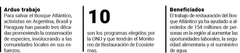 Brindará incentivo para restaurar 15 millones de hectáreas en Argentina, Brasil y Paraguay del Bosque Atlántico de América del Sur, nombrado buque insignia de la restauración mundial.