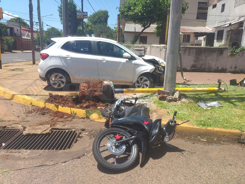 Tras impactar contra un vehículo el joven terminó cayendo al asfalto con lesiones de distinta consideración.