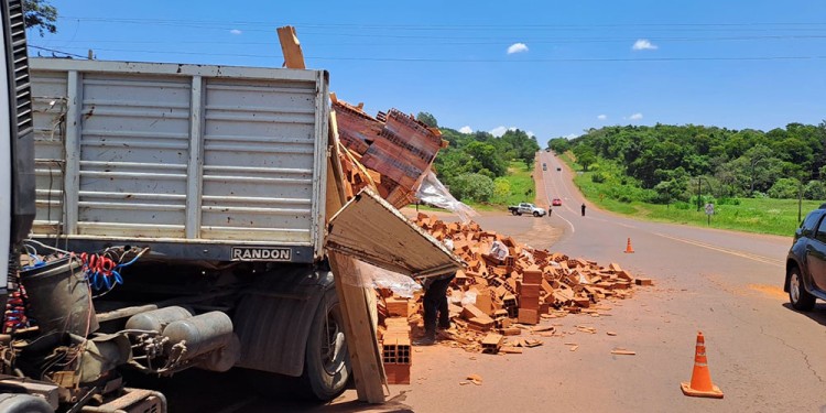 En horas de la siesta el conductor de un camión que transportaba ladrillos huecos se encontró sin más opción que realizar una maniobra brusca porque el sistema de frenos falló.