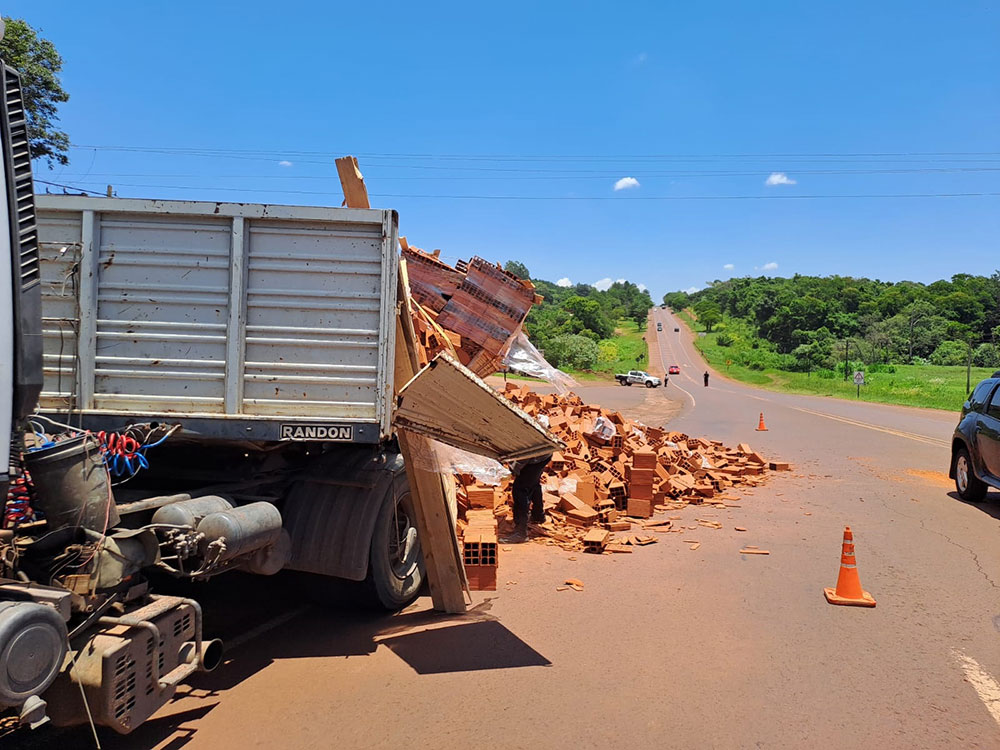 A causa de este percance, la carga que trasladaba terminó cayendo sobre la Ruta Nacional 12 a la altura del kilómetro 1480 en Garuhapé..